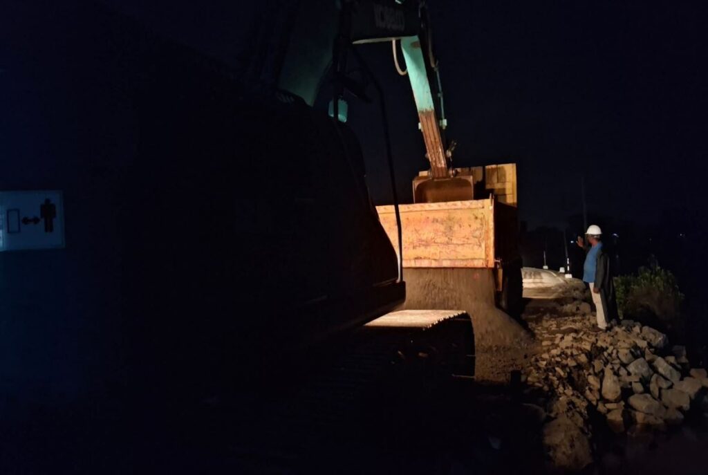 பரந்தன் புதுக்குடியிருப்பு ஊடான முல்லைத்தீவு ஏ35 வீதி இரண்டாக பிளவுபட்டிருந்ததால் போக்குவரத்து முற்றிலும் தடைப்பட்டுள்ளதனை சீர் செய்யும் பணி இரவு பகலாக இடம்பெற்றிருந்தது.