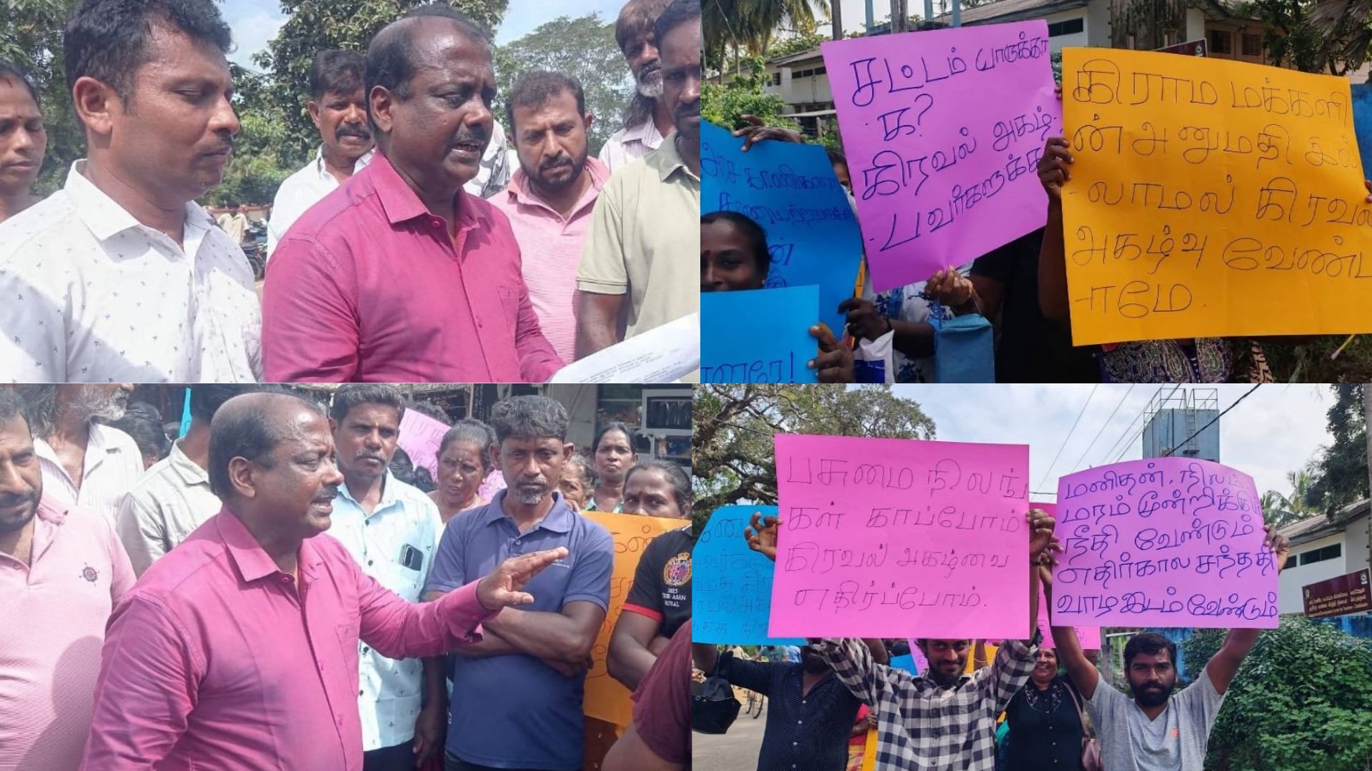 போராட்டத்தில் ஈடுபட்டவர்கள் ”இயற்கையை அழிக்காதீர்கள், சட்டவிரோத கிரவல் அகழ்விற்கு தடை விதியுங்கள், எமது கிராமத்தின் வளங்கள் சுரண்டலுக்கு மாத்திரமா’ போன்ற வாசகங்கள் தாங்கிய பதாதைகளை ஏந்தியிருந்ததுடன் கோசங்களை எழுப்பியிருந்தனர்.