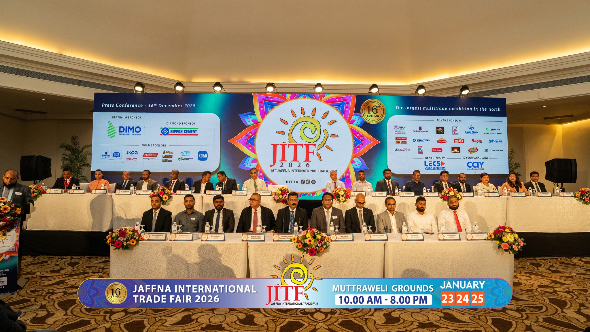 The organizers gratefully acknowledge the support of the following sponsors, whose contributions have been instrumental in making the 16th Jaffna International Trade Fair 2026 a