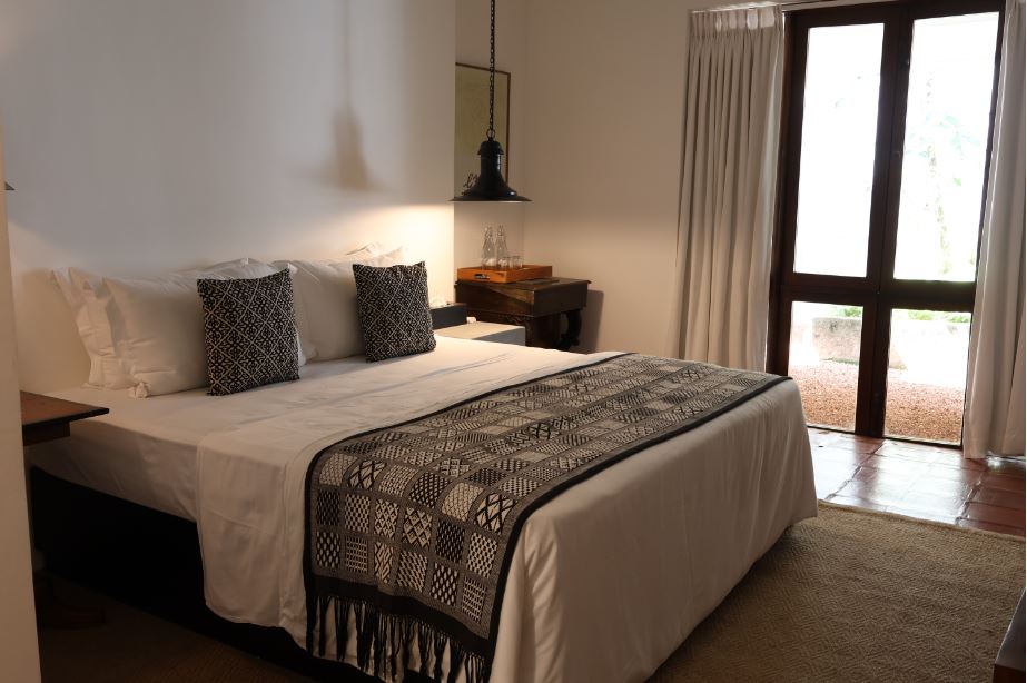 After undergoing extensive renovations in 2024/2025 by architect and Geoffrey Bawa Trust Chair, Channa Daswatte, alongside Chamika De Alwis, also an architect and Trustee, the newly refurbished one-bedroom suite feels fresh and modern, while maintaining Bawa’s architectural style. As with many of his properties, the space relishes clean lines, connections between indoor and outdoor spaces, and emphasises functionality and natural light.